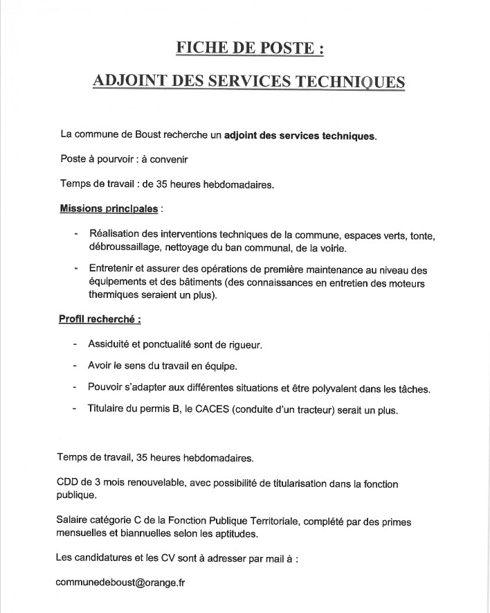 Offre d’emploi au service technique :