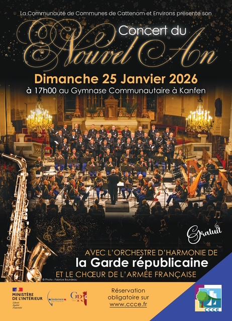 La Communauté de Communes de Cattenom et Environs organise son traditionnel Concert du Nouvel An, avec pour la troisième année consécutive, l’Orchestre de la Garde républicaine et le Chœur de l’Armée française.